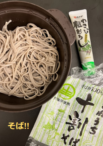 - そばをボウルに入れて、パッケージの時間通りにチンします。