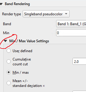 - Click the arrow next to Min/Max Value settings section and choose Mean +/- standard deviation to 1 (this setting is only to improve the contrast)