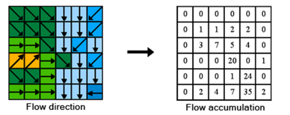- Spatial Analyst Tools > Hydrology > Flow Accumulation