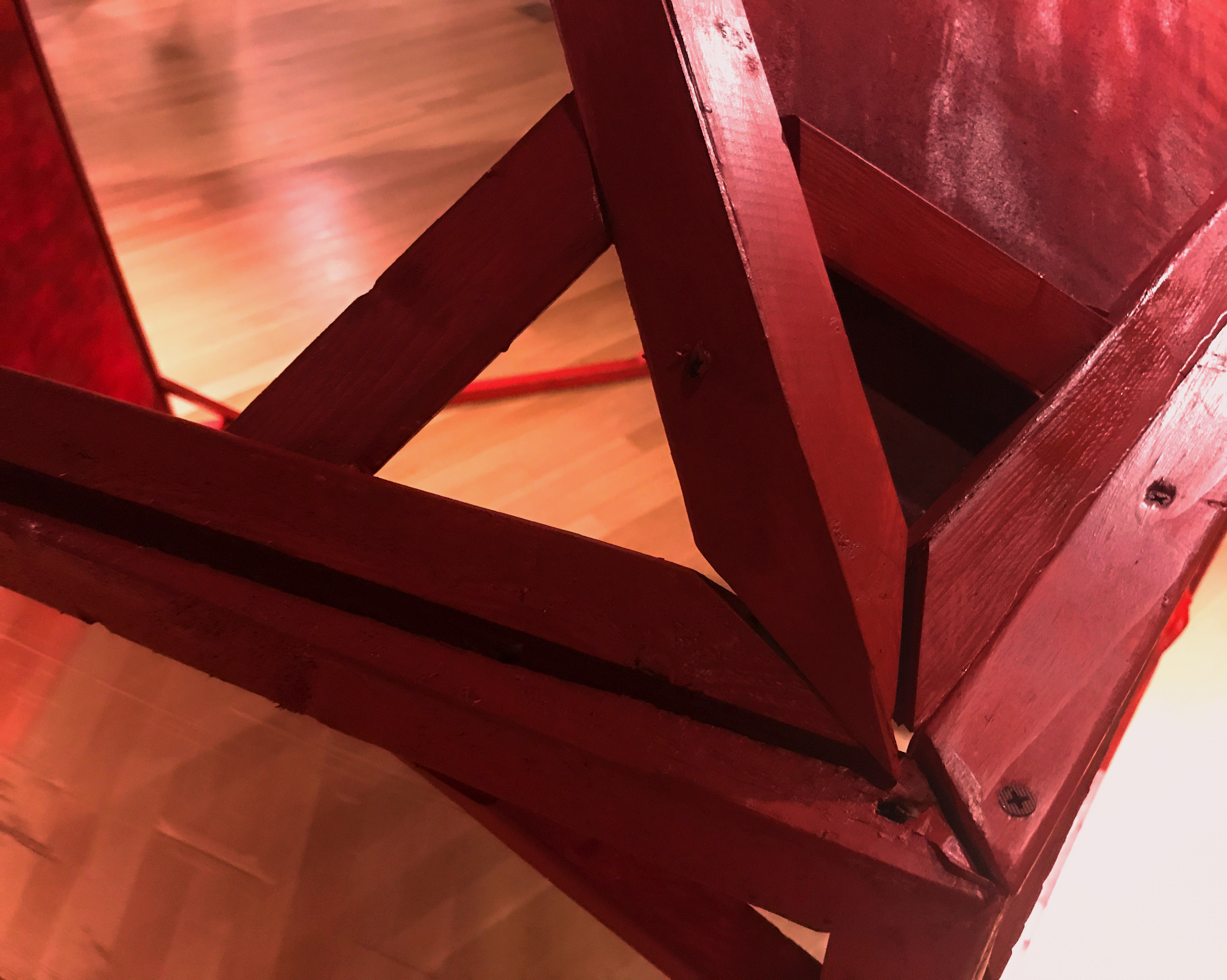 ART HOUSE is an immersive installation consisting of a wooden structure with five closed sides, one open side & a five sided roof using many different materials handled in different ways. It was created as a healing space, a celebration of materiality & a focused study of the color red.