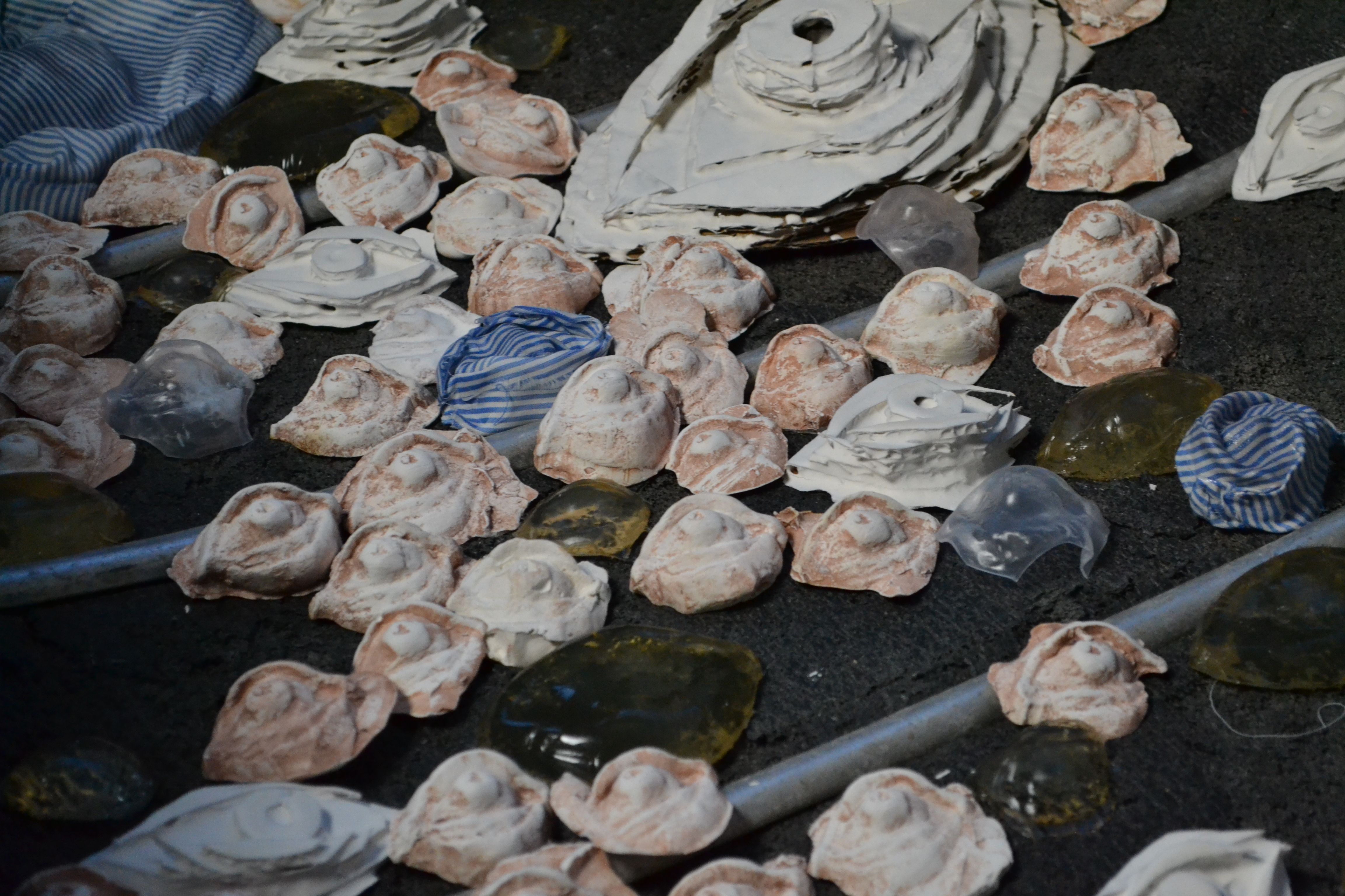 Viking Burial (Ophelia) April 2019 / canoe, plaster, jello, rubber, cardboard, fabric