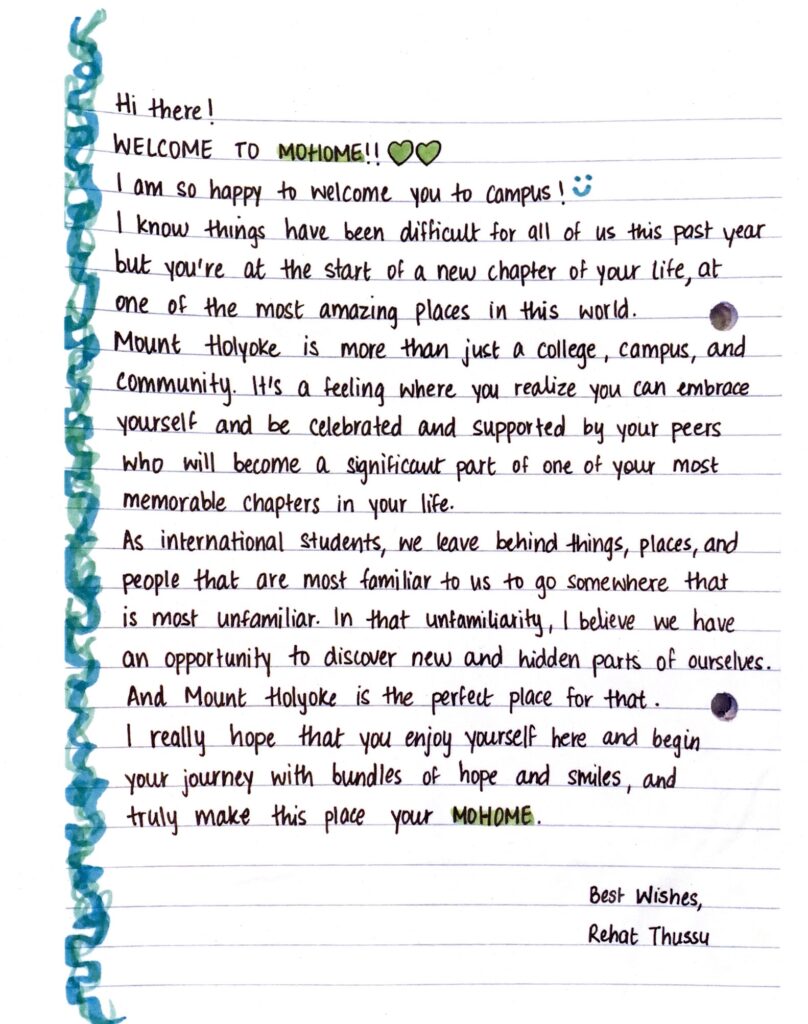 Pictured above is the ISOC Board following the completion of International Student Orientation events, fall 2024. Left to right (top): Yewon Lee (South Korea), class of 2026; Ria Miller (Jamaica), class of 2026; Nathania Amadi (Nigeria), class of 2026; and Baya Jaiswal (India), class of 2027. Bottom: Meghna Karmarcharya (Nepal), class of 2025, and Sky Cho (South Korea), class of 2025.
