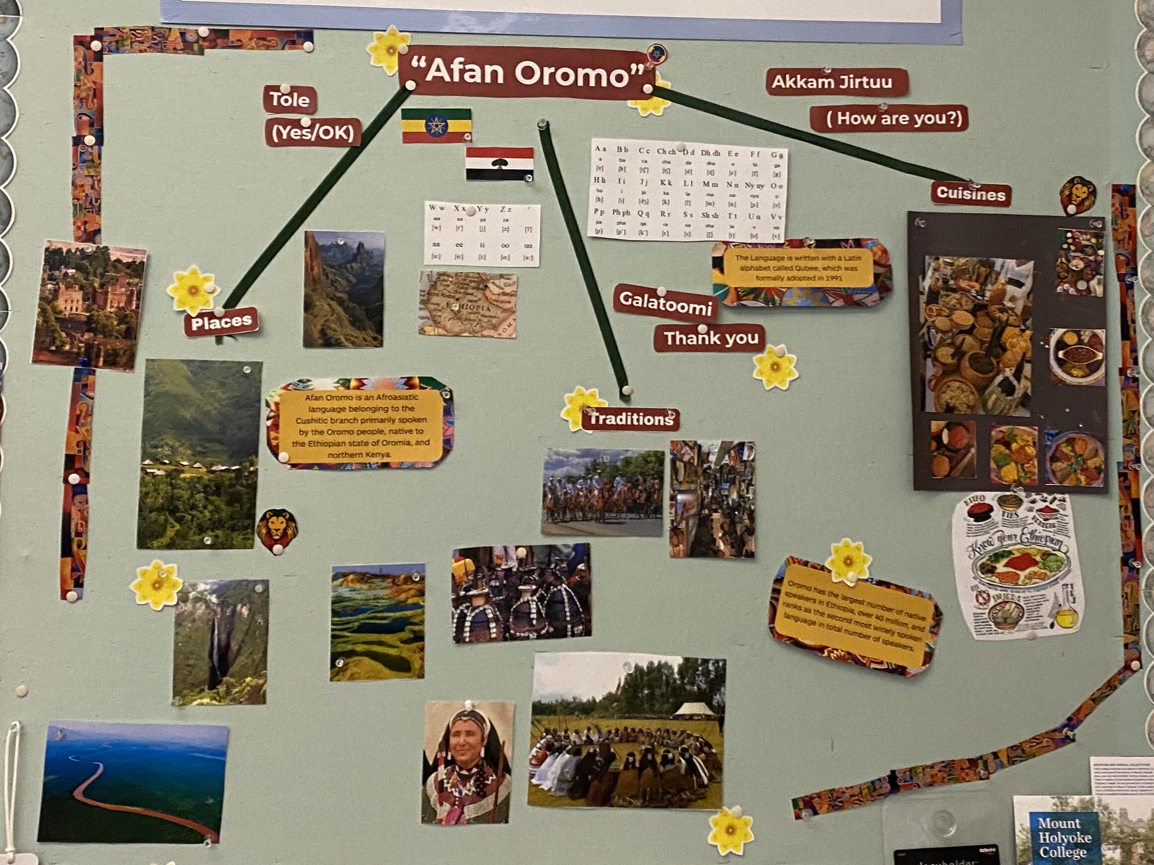 Afan Oromo is an Afroasiatic language belonging to the Cushitic branch primarily spoken by the Oromo people, native to the Ethiopian state of Oromia, and northern Kenya. Oromo has the largest number of native speakers in Ethiopia, over 40 million, and ranks as the second most widely spoken language in total number of speakers. The Language is written with a Latin alphabet called Qubee, which was formally adopted in 1991. There are a plethora of vibrant words and festive music to enjoy in Afan Oromo. If you are interested in learning more, see the courses offered at Live lingua Project. Also, drop by the LCC to check out our awesome board!