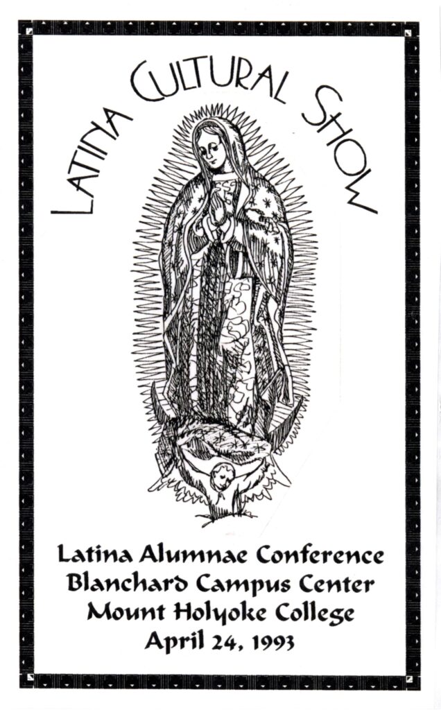 Latina Alumnae Conference; Latina Cultural Show cover featuring La Virgen de Guadalupe, 1993