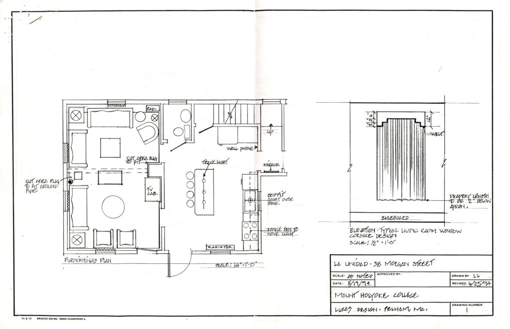 As a result of the Coalition (a multicultural group advocating for numerous demands), the Latina community at Mount Holyoke was approved for a multicultural space outside of the Wilder Basement – now known as the Eliana Ortega Cultural House. This shows the blueprints of the house, which officially opened on November 15th, 1995. Originally, the house was shared between Latinas and indigenous people, with the Zowie Banteah Cultural Center for Indigenous Students occupying the second floor.